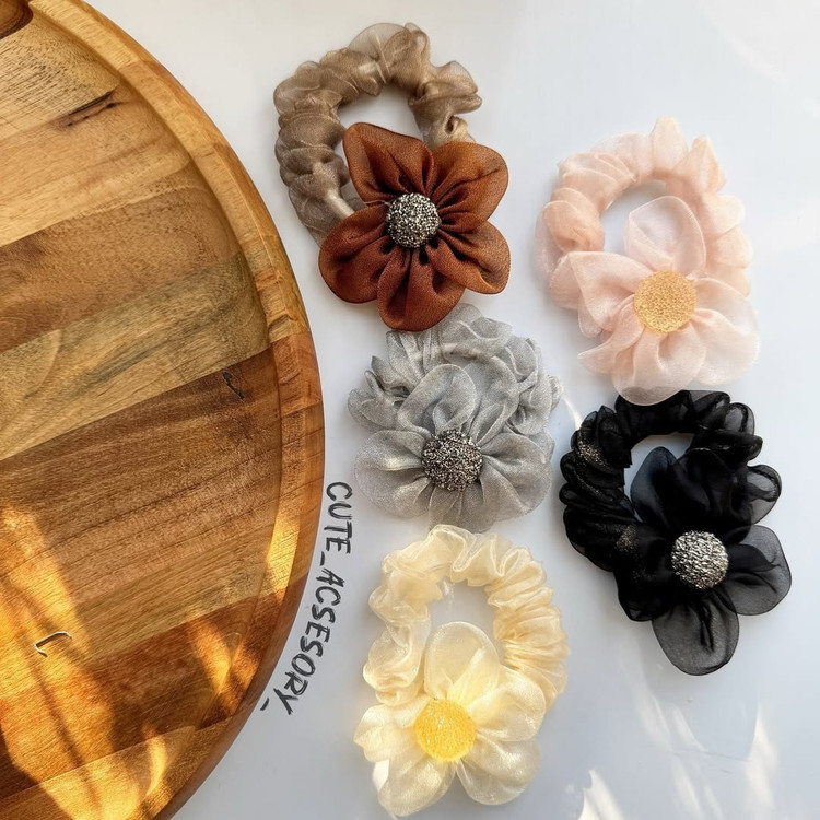 کش مو اسکرانچی گل حریر مناسب همه ی سنین وارداتی و جنس اعلا کشسانی عالی