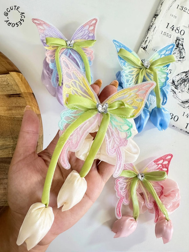 سایز بزرگ جنس ساتن حریر درجه یک مناسب هر حجم مو ترکیب ساتن گیپور و نگین