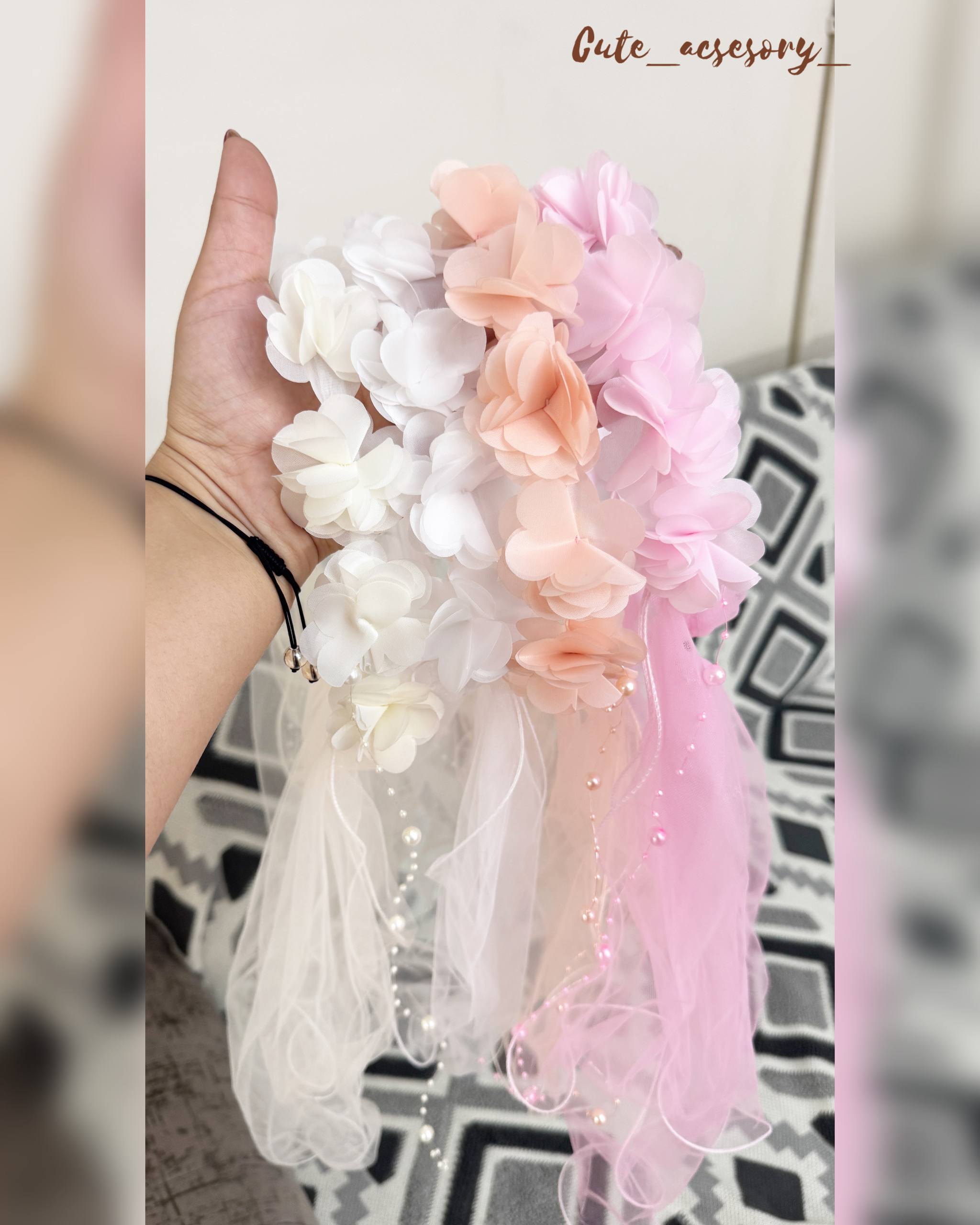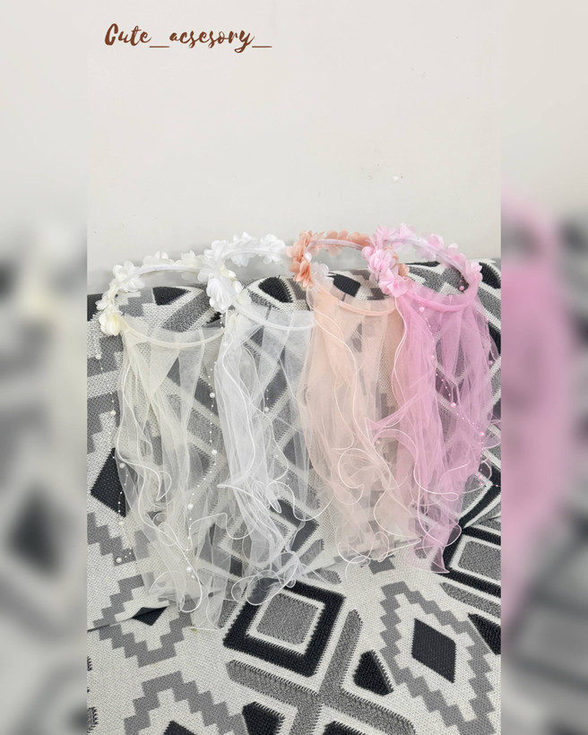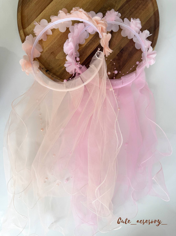 حلقه گلدار با آویز تور و مروارید