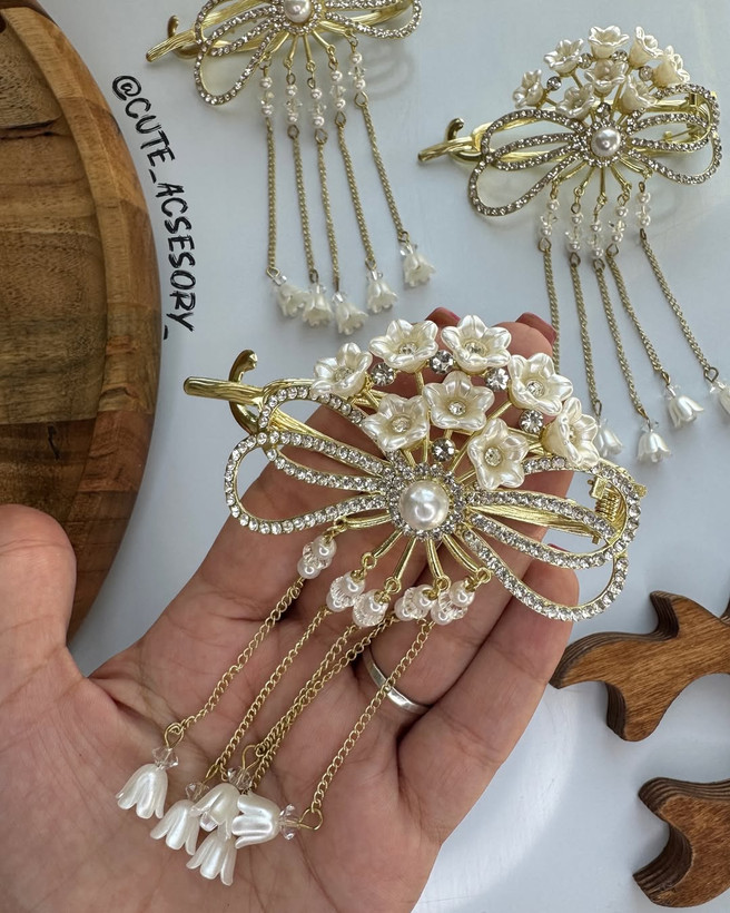 کلا نگین کار شده اویز زنجیری کیفیت درجه یک و تضمینی سایز بزرگ و استاندارد مناسب هر حجم موی